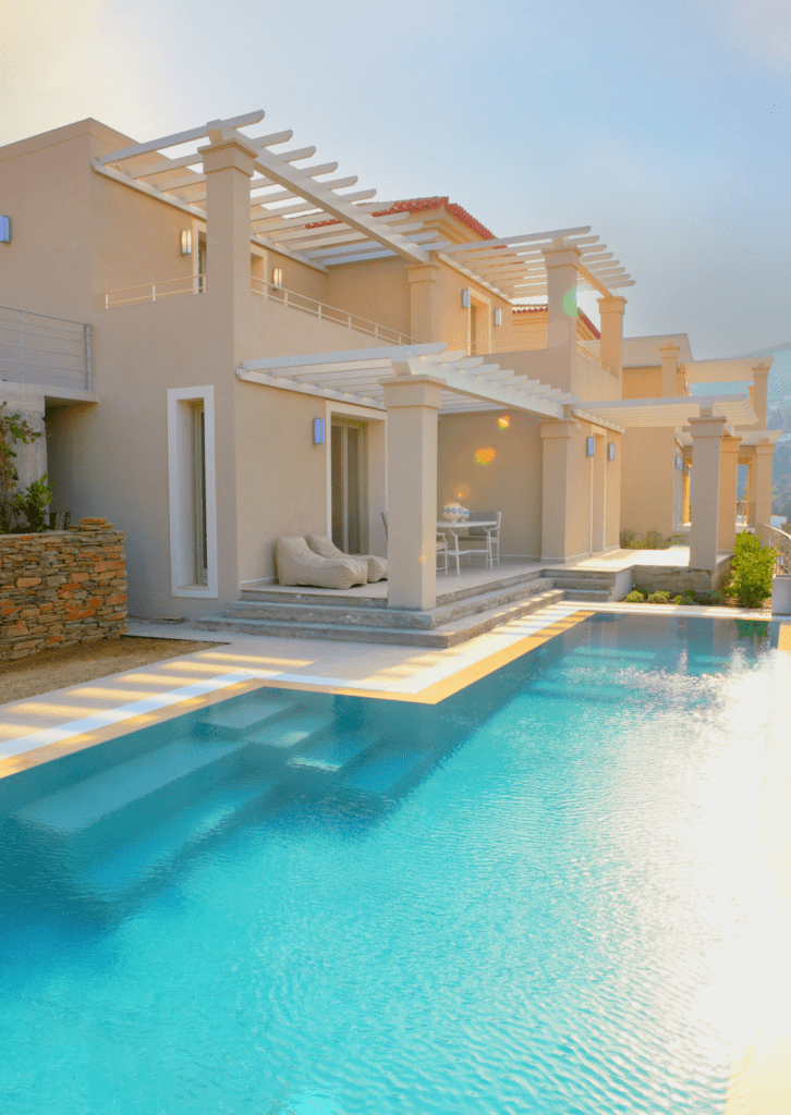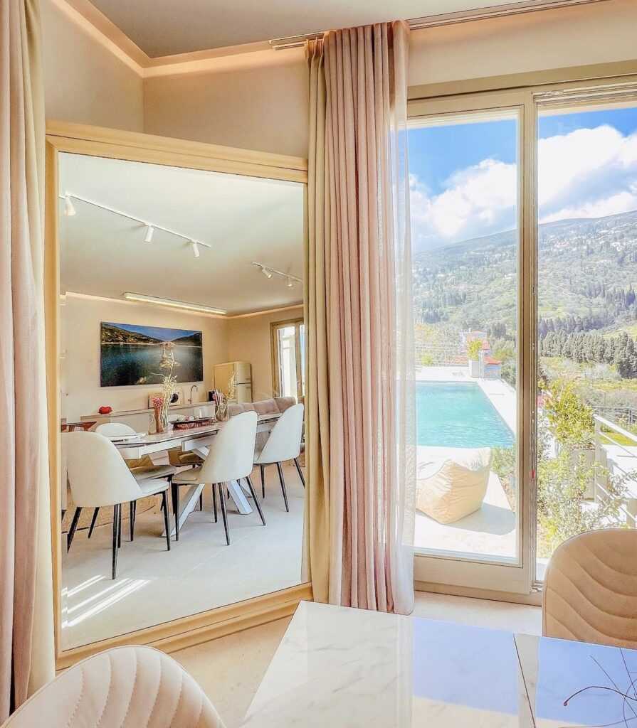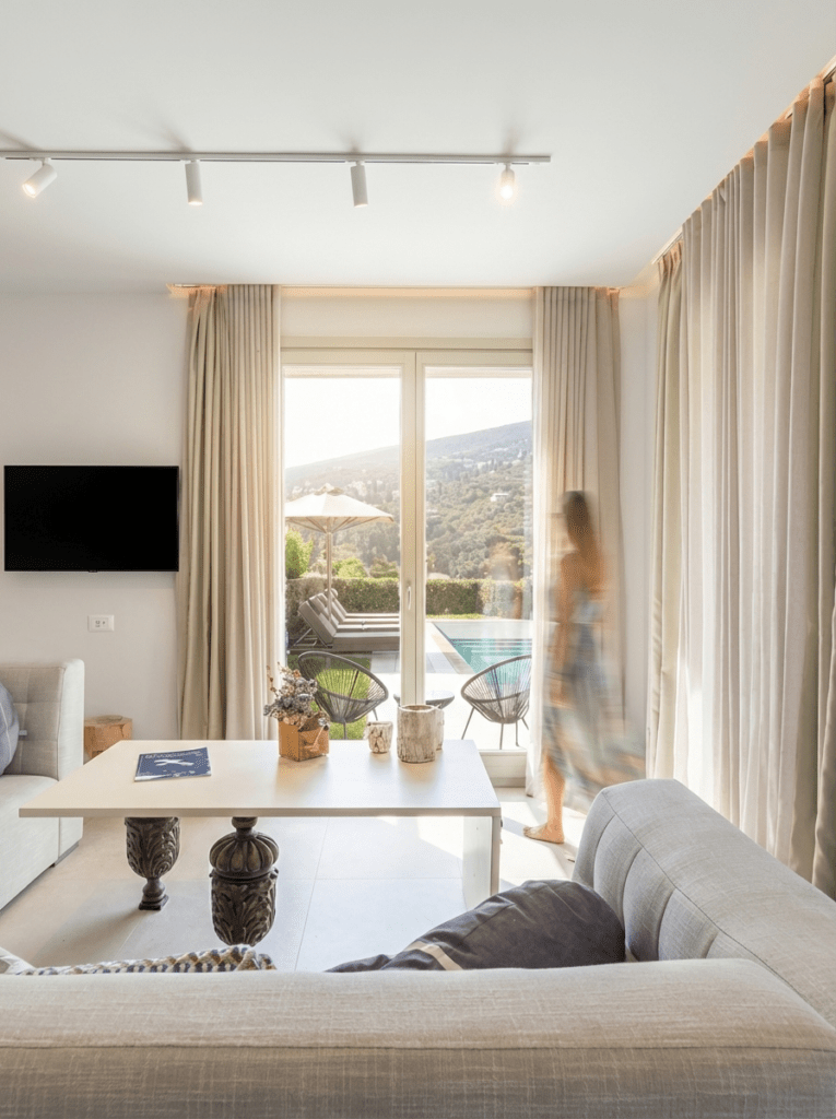Με θέα το Αιγαίο και τα καταπράσινα γύρω χωριά, κάθε βίλα αποτελεί μια ξεχωριστή αισθητική πρόταση. Η in-house αρχιτεκτονική ομάδα της Suite Home συνδυάζει σύγχρονη νησιώτικη κομψότητα με καλλιτεχνικές αναφορές, μέσα από συλλεκτικά έπιπλα, έργα τέχνης, οικολογικά υλικά και παραδοσιακά υφαντά σε σύγχρονες εκδοχές, δημιουργώντας έναν διακριτικό διάλογο ανάμεσα στο χθες και το σήμερα.