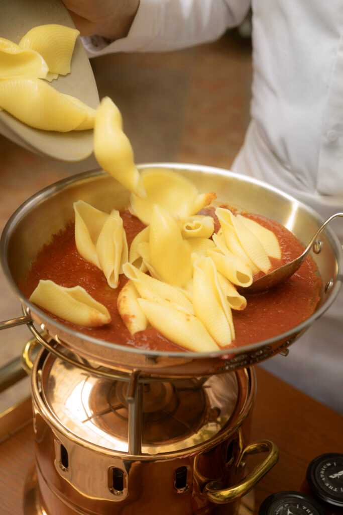 Ο Αστέριος Κουστούδης, ακολουθώντας τη μαγειρική του διαίσθηση, αναζήτησε τρόπο να καλλιεργήσει τις δικές του ντομάτες και τα κατάφερε, εξασφαλίζοντας σπάνιες ποικιλίες, όπως Datterini, Nelly’s Grape, Marmande και Fiorentino Costoluto, καλλιεργημένες χειρωνακτικά με φυσικές μεθόδους από έναν μικρό παραγωγό στις παρυφές του όρους Πατέρας. Από αυτές δημιούργησε μια εξαιρετική σάλτσα, μαγειρεμένη με ανθό αλατιού και εξαιρετικό παρθένο ελαιόλαδο, την οποία συντηρεί σε γυάλινα βάζα και ανοίγει μπροστά στους επισκέπτες. Τα φρέσκα ζυμαρικά ετοιμάζονται επί τόπου, μπροστά στο τραπέζι του επισκέπτη, μαγειρεύονται μέσα στην υπέροχη αυτή σάλτσα και συνοδεύονται με τυρί Σαν Μιχάλη.