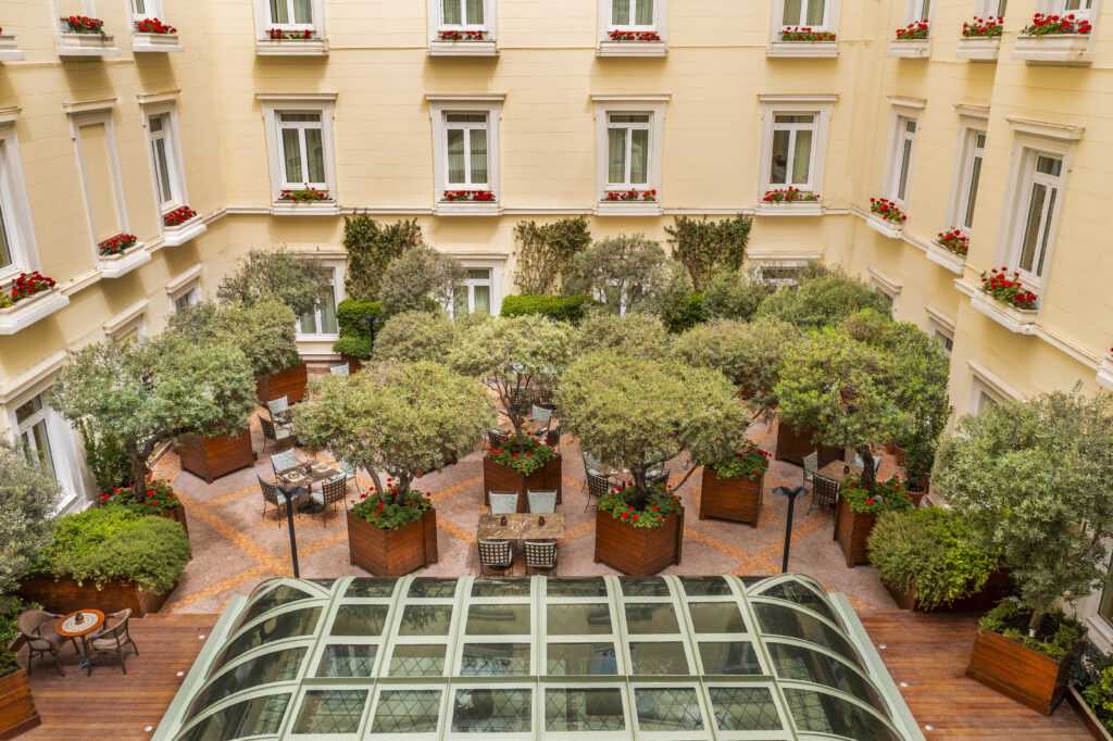 Στον πρώτο όροφο του Ξενοδοχείου Μεγάλη Βρεταννία, στο αίθριο του Alexander’s Lounge, κρύβεται ένας καταπράσινος «μυστικός κήπος» μέσα στην καρδιά της πόλης. Ανάμεσα σε ελαιόδεντρα, δάφνες, κυπαρίσσια και λουλούδια, ξεδιπλώνεται ένα κομψό σκηνικό που προσφέρει ηρεμία και χαλάρωση, μόλις λίγα βήματα από τη ζωντάνια του κέντρου.
