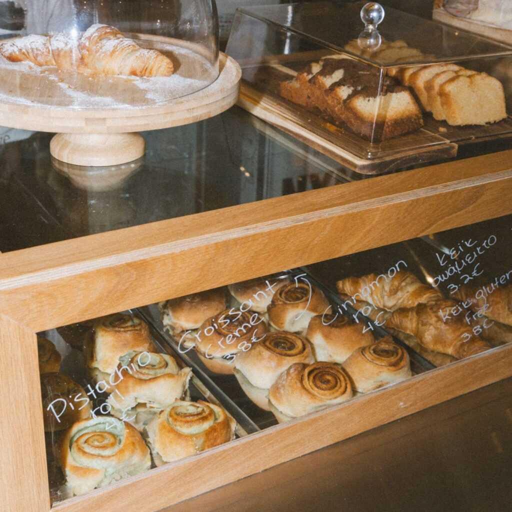Από νωρίς το πρωί, ο αέρας γεμίζει με το άρωμα του καφέ Area 51, που σερβίρεται με συνέπεια και φροντίδα. Στη βιτρίνα, η ζύμη έχει τον πρώτο λόγο: χειροποίητες φοκάτσιες με προσούτο ή παστράμι, αφράτα bagels, αλλά και γλυκές επιλογές που έχουν ήδη γίνει αγαπημένες — pistachio roll, cinnamon roll, φρεσκοψημένα κρουασάν και red velvet cake, όλα φτιαγμένα καθημερινά στο χώρο, με τη λογική του less but better.