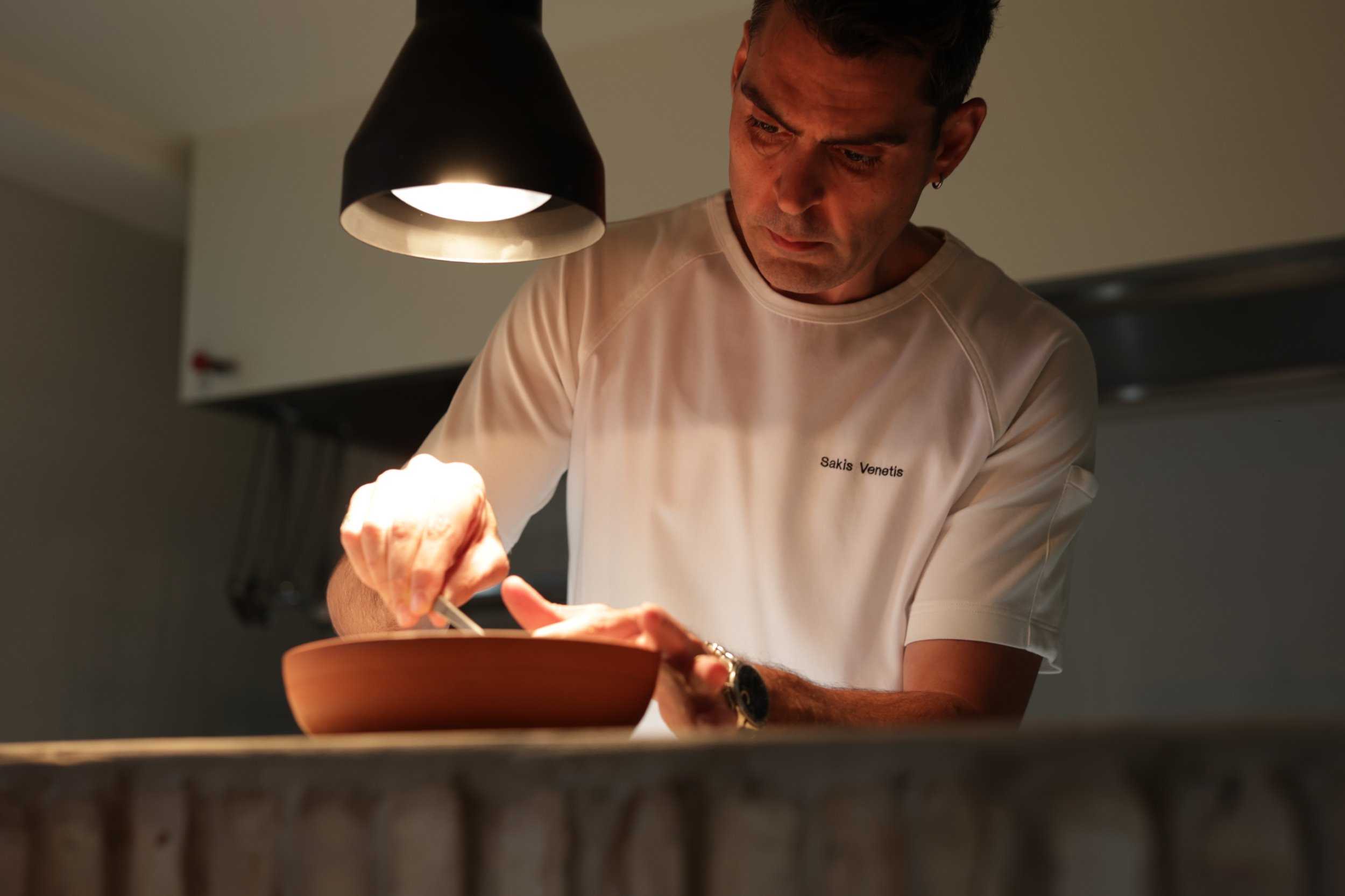 Σε έναν χώρο φροντισμένο με μεράκι, όπου κυριαρχούν γλάστρες με μυρωδικά και φυτά της Ελληνική γης, ο σεφ του εστιατορίου και Group Executive Chef των Electra Hotels & Resorts υπογράφει ένα προσεγμένο μενού που αναδεικνύει τον πλούτο της ελληνικής κουζίνας και απογειώνει την παραδοσιακή μαγειρική με φαντασία και δημιουργικότητα. Με κορυφαίες πρώτες ύλες από ντόπιους παραγωγούς και εκλεπτυσμένες γεύσεις που ισορροπούν ανάμεσα στο παρελθόν και το παρόν, ο Σάκης Βενέτης τιμά την κουλτούρα του μοιράσματος στο ελληνικό τραπέζι με τον πιο σύγχρονο τρόπο. O φρέσκος μπακαλιάρος πλακί με πατάτα, ντομάτα τριφτή και αρωματικά που σιγοψήνεται σε λαδόκολλα στα υγρά του, το ψητό καλαμάρι με τη Σιφνέικη ρεβυθάδα, τα χερίσια μακαρόνια με κατσικάκι Κιμώλου, κατσικίσια μυζήθρα Μάνης και πέστο από φύλλα σκόρδου με φρέσκια ρίγανη, τα μοσχαρίσια κεφτεδάκια σχάρας με καπνιστή σάλτσα ντομάτας, αρωματικό γιαούρτι, χειροποίητη πίτα και πατάτα και η μυκονιάτικη κρεμμυδόπιτα με τυροβολιά Μυκόνου, αρωματικά και πετιμέζι ροδιού είναι μόνο μερικά από τα πιάτα που αντανακλούν τη φιλοσοφία του.